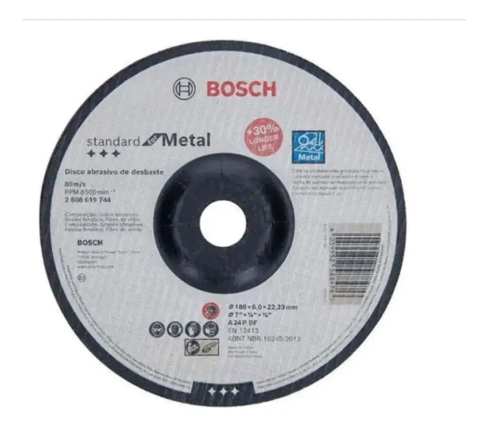 O Disco de Desbaste Standard for Metal 180mm é a escolha ideal para quem busca alto rendimento, precisão e segurança no trabalho com metais. Desenvolvido com grãos abrasivos de óxido de alumínio de alta qualidade, ele proporciona excelente desempenho em operações de desbaste, garantindo rapidez e eficiência.